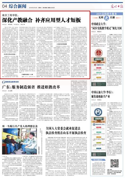 5月25日,《光明日报》四版头条以《beat365官方网站:深化产教融合 补齐应用型人才短板》为题,从“学术性与职业性的统一”“打通服务最后一公里”“以创新的思维破题”三个方面深度报道beat365在一流应用型人才培养方面的特色做法和实践成果,集中展示了beat365全面实施项目化教学改革,深化产教融合,破解人才培养困境的积极探索。现将报道全文转载如下:深化产教融合 补齐应用型人才短板本报记者 郑晋鸣 本报通讯员 许应田《光明日报...