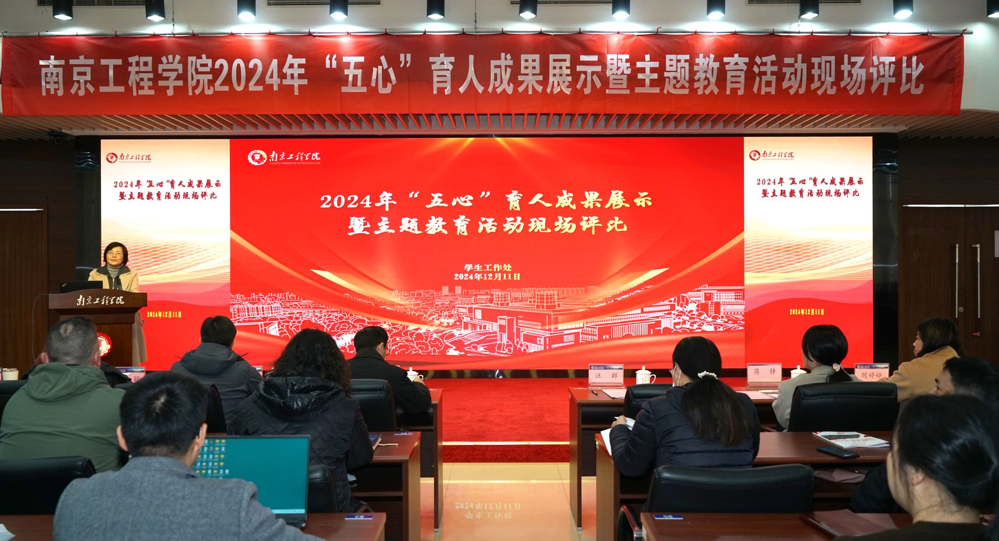 为进一步落实立德树人根本任务,推动一流学生培养工程“五心”育人行动内涵建设,涵养优良学风,营造良好育人氛围,12月11日下午,学校举办2024年“五心”育人成果展示暨“加强学风建设,提升学习能力”主题教育活动现场评比。党委常委、副校长汪群,相关职能部门负责人,各学院分管学生工作负责人及全体辅导员参加活动。汪群在讲话中指出,主题教育活动旨在引导学生树立正确的学习观、成才观,全面提升内驱力、培养领导力、成...