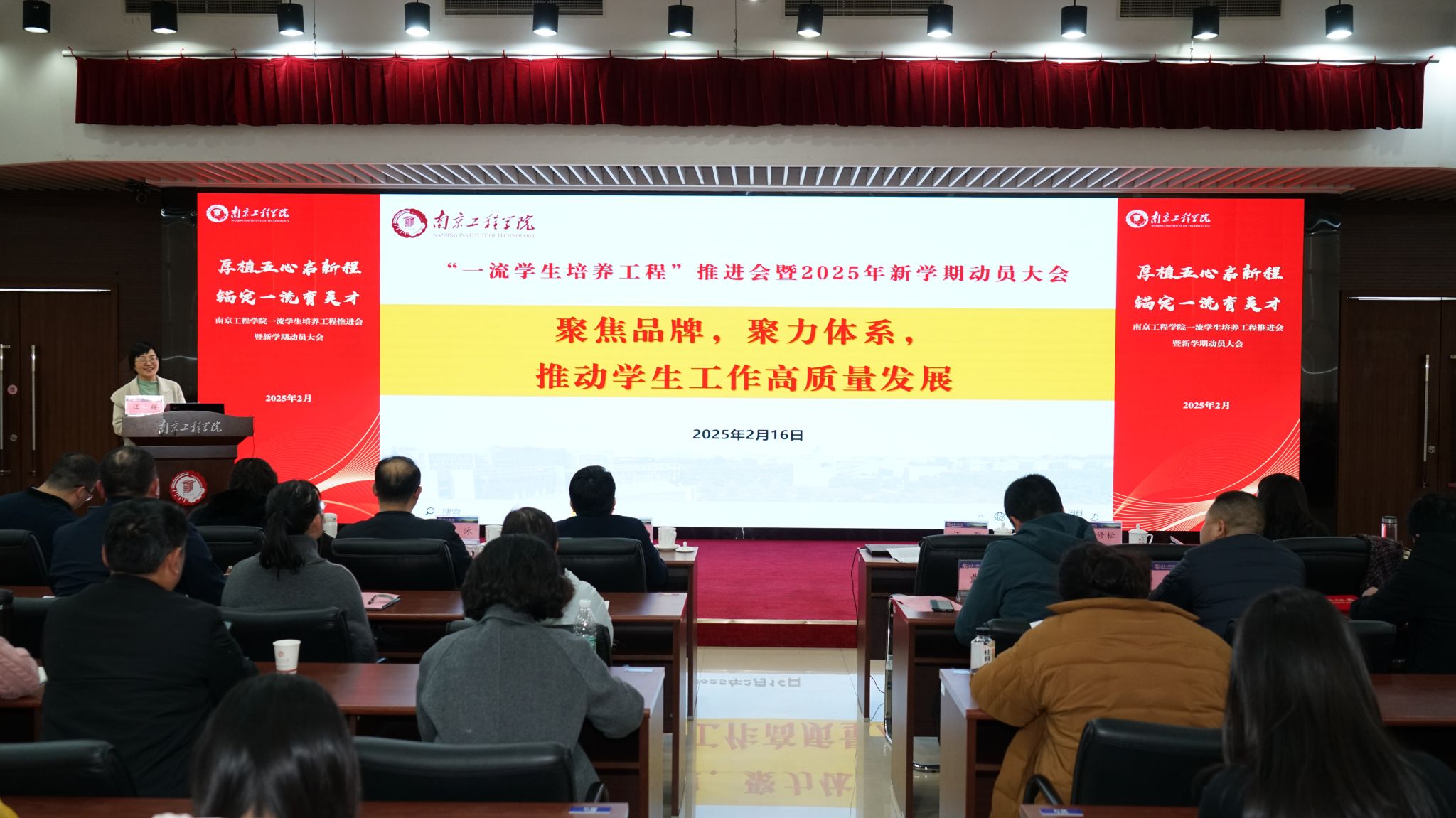 2月16日下午,学校“一流学生培养工程”推进会暨新学期动员大会在至勤楼・行政中心二楼多功能厅召开。党委常委、副校长汪群出席会议并作总结讲话。会上,学生工作处、招生就业处、团委分别回顾了2024年的工作亮点与成效,对2025年具体工作进行谋划与部署。各二级学院通过PPT展示了过去一年学生工作方面取得的突出成果。大会还对2024年度在大学生思想政治教育、就业创业、共青团等工作中表现优异的先进集体和个人进行了表彰。交...