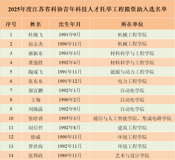 近日,江苏省科协公布2025年“青年科技人才托举工程”资助对象名单,beat36514名青年教师入选。江苏省“青年科技人才托举工程”是由江苏省科学技术协会组织实施的人才项目,培养时间为2年。项目旨在支持青年科技人才在创造力“黄金期”潜心研究、深入探索,尽快成长为高层次科技创新人才的储备力量。beat365高度重视青年科技工作者的成长,近年来,持续加大投入,强化学科平台建设,打造高水平科研团队,促进跨学科交流与合作,为青年...