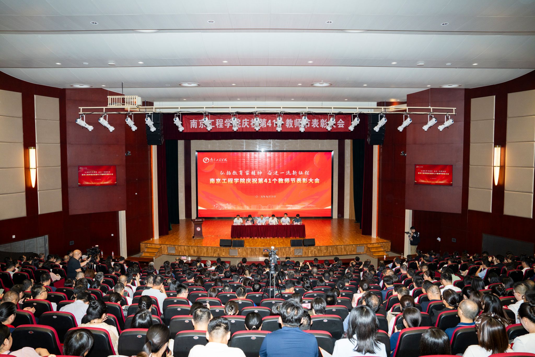 以教育家精神铸魂强师,谱写教育强国建设华章。9月10日,学校隆重召开庆祝第41个教师节表彰大会。大会以“弘扬教育家精神 奋进一流新征程”为主题,全体在校校领导、中层干部、受表彰的先进个人以及师生代表出席表彰大会。大会由党委副书记濮励杰主持。党委书记孙爱武向辛勤工作、默默奉献的全校教职员工致以节日的问候和诚挚的祝愿。他回顾了过去一年来学校事业高质量发展的经验与成效,希望广大南工程教职员工坚定理想信念,...