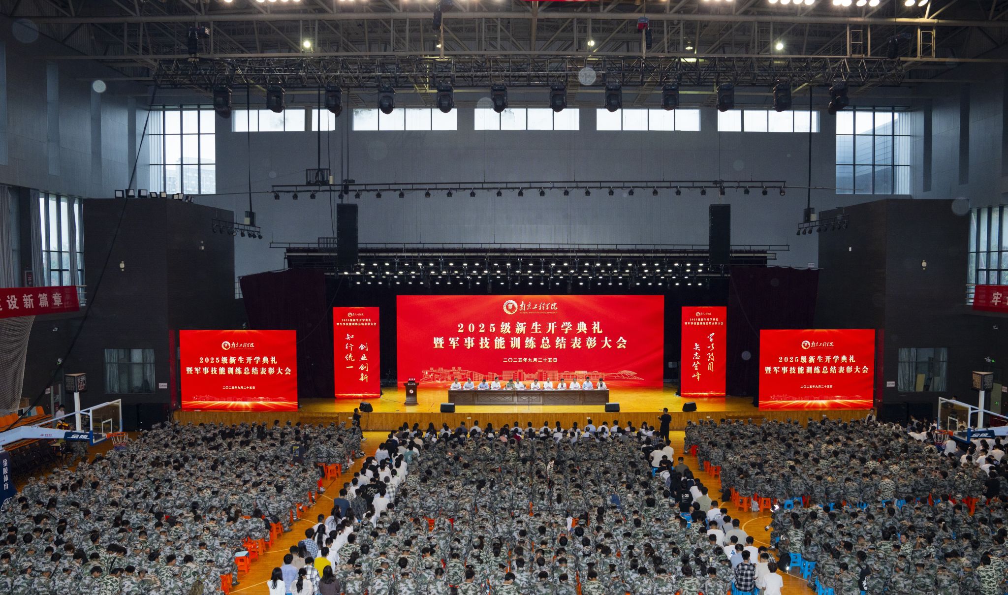 学校举行2025级新生开学典礼暨军事技能训练总结表彰大会