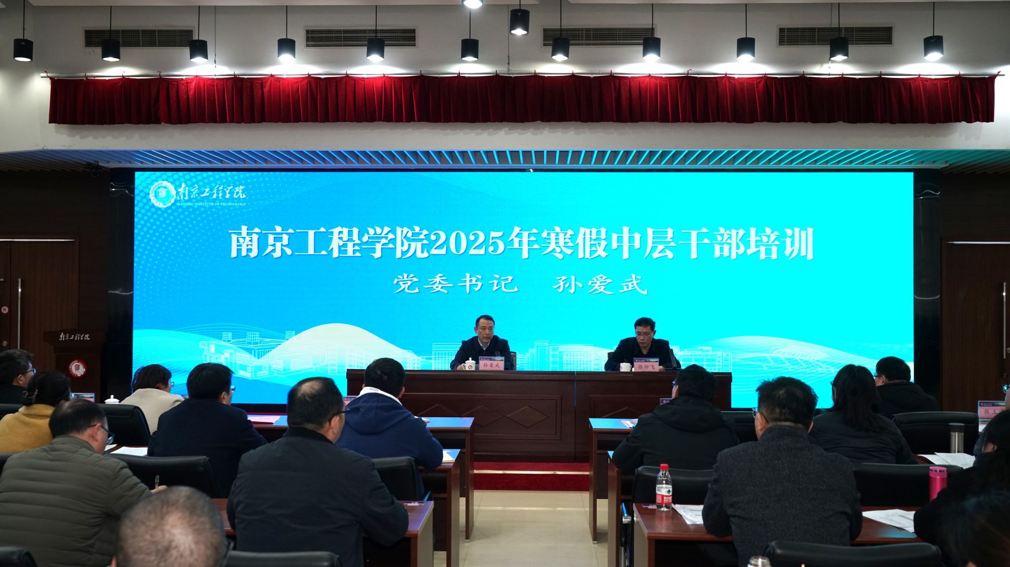 1月19日,学校在至勤楼·行政中心二楼多功能厅举办2025年寒假中层干部培训班。党委书记孙爱武,党委副书记、校长张仰飞等在校校领导,全体中层干部以及跟岗锻炼博士教师参加培训。本次培训邀请校资企业南京康尼机电股份有限公司首席专家史翔教授、南京师范大学党委书记王成斌作专题讲座。史翔在《车门上的脚印——回眸轨道交通“第一门”如何筑成》报告中,以与南工程三十余年血水相融的校企合作为背景,讲述了从“无锁而闭”到...