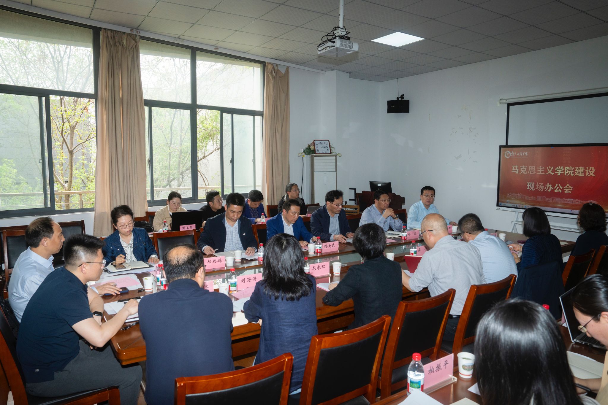 4月11日下午,党委书记孙爱武,党委副书记、校长张仰飞到马克思主义学院召开现场办公会,就加强马克思主义学院建设、思政课程建设进行工作指导。学校相关职能部门、学院负责人,马克思主义学院领导班子成员、学科骨干教师参加会议。会上,马克思主义学院负责人汇报了学院师资队伍建设、思政课建设、学科建设等方面的工作情况,并对标省高校示范马克思主义学院明晰今后努力方向。相关职能部门就支持马克思主义学院学科交叉融合、...