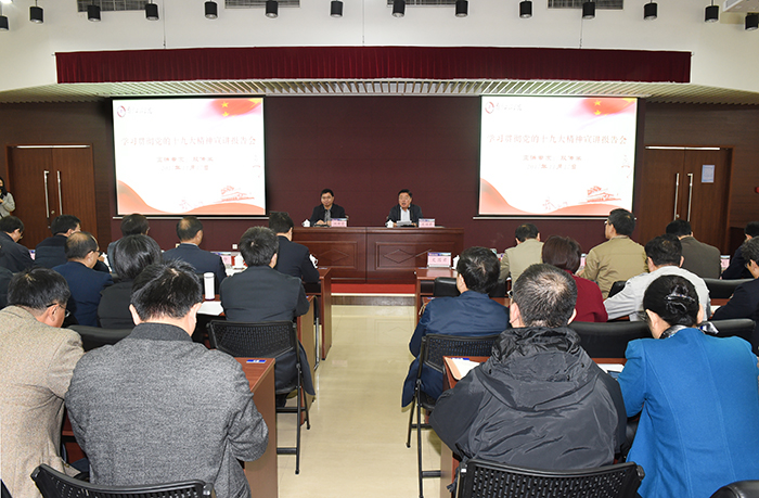 党的十九大报告思想深邃、博大精深。报告会上,双传学总编以理论联系实际,紧扣党的十九大报告,紧紧围绕习近平新时代中国特色社会主义思想这个主线,从“时代新主题、历史新方位、理论新概括、发展新征程、矛盾新变化、党建新要求”等六个方面,深入浅出地对党的十九大提出的新思想、新论断、新要求、新任务作了全面系统而又突出重点的解读。他以翔实的数据和大量的案例,全面回顾我国过去五年的历史性成就和历史性变革,系统讲解中国特色社会主义进入新时代,我国社会主要矛盾的变化、两个一百年奋斗目标的战略部署、我国经济社会发展重大战略部署以及坚定不移推进全面从严治党等方面内容。双传学强调,各单位、各部门要准确把握习近平新时代中国特色社会主义思想的核心要义和丰富内涵,真正把学习党的十九大精神的成果转化为推动事业发展的强大动力,努力谱写社会主义现代化新征程的壮丽篇章。