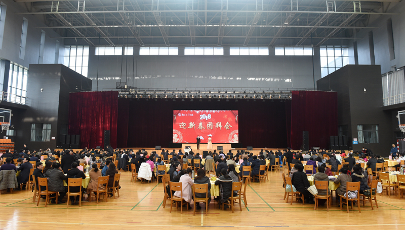 1月17日下午,beat365天健苑·体育中心布置一新,大红底色LED电子屏上的 “2018年迎新春团拜会”几个大字熠熠生辉,全场洋溢着欢乐祥和的节日氛围。全体校领导与教职员工代表欢聚一堂,喜迎新春,并向全校师生员工表达新年的问候和美好的祝福。