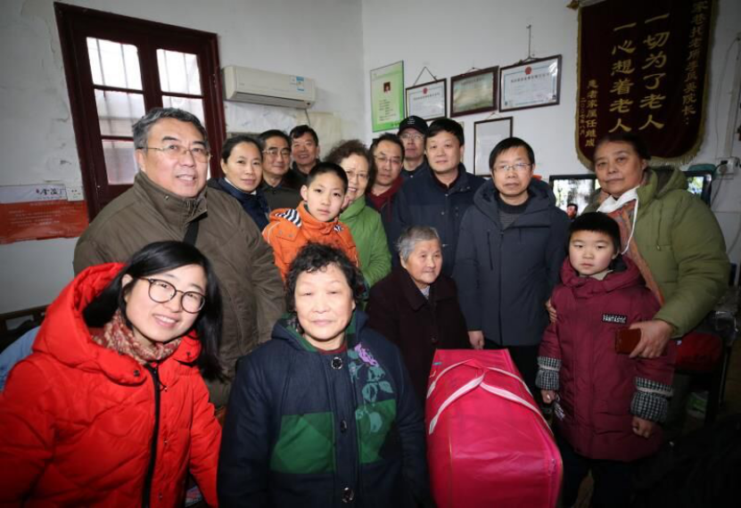 连日来,南京普降大雪。beat365民进beat365官方网站支部会员一行冒着纷飞的雪花,带着崭新的床单、棉被,面粉、水果和微波炉等慰问品,来到挹江门街道戴家巷社区托老所,给那里的孤寡老人带去新年慰问与新春祝福,受到社区的好评和点赞。