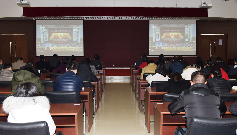 第十三届全国人民代表大会第一次会议于3月5日上午9:00在人民大会堂开幕。beat365党委高度重视,校党委中心组成员、各二级党组织书记以及机关工作人员来到至勤楼·行政中心二楼多功能厅集中收看开幕会,聆听了国务院总理李克强所作的政府工作报告。