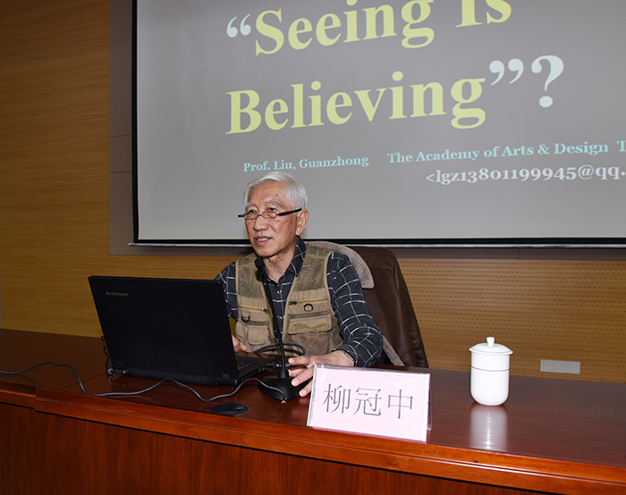 讲座以“耳听为虚,眼见为实吗?”的问句为题,设置悬疑,一下子就激发了听众的兴趣。年逾古稀的柳冠中教授精神饱满,热情洋溢,围绕“何为设计”、“设计的评价体系”、“设计的思维方法”、“设计师的责任”、“设计与研究题目的确定”、“设计的终极目标”等问题侃侃而谈,或借用故事巧妙比喻,深入浅出,或通过设计实例旁征博引,鞭辟入里。他认为,作为设计从业人员,不能仅凭“眼见”和“耳听”停留在事物的表象上,而应该善于用“脑”和“心”去思考和反省,透过现象看本质;同时,在互联网+的时代,设计工作者只有真正地理解科学和传统文化,着眼于人类的未来,用智慧和良知去捕捉设计之本,超以象外,得其圜中,从“造物”的设计观过渡到“谋事”的责任意识,通过系统的跨界整合,才能真正地解决人类生存和发展的潜在需求,创造健康、合理、共享、公平的生存方式。