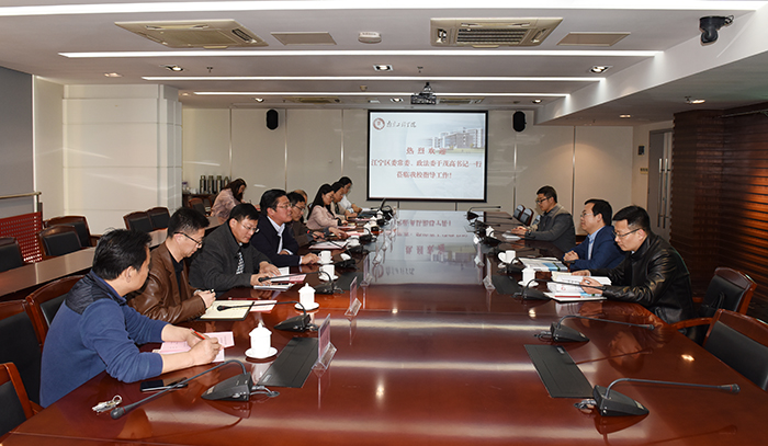 于茂高书记从“校领导高度重视、创建工作成体系、安全文化氛围浓郁、校地合作成效显著”等方面高度评价了beat365平安校园示范校的创建工作和校园治理工作。他表示,此行充分感受到beat365官方网站切切实实做到了育人工作和综合治理工作“两手抓、两促进”,有很多做法值得江宁区学习。全要素网格化是江苏正在着力打造的社会治理新体系,也是江宁相关部门的工作重点,他希望学校能够在社区网格员培训、将学校应急指挥系统融入地方“雪亮工程”以及法制宣传教育、社区矫正等方面与江宁区有更多的合作。