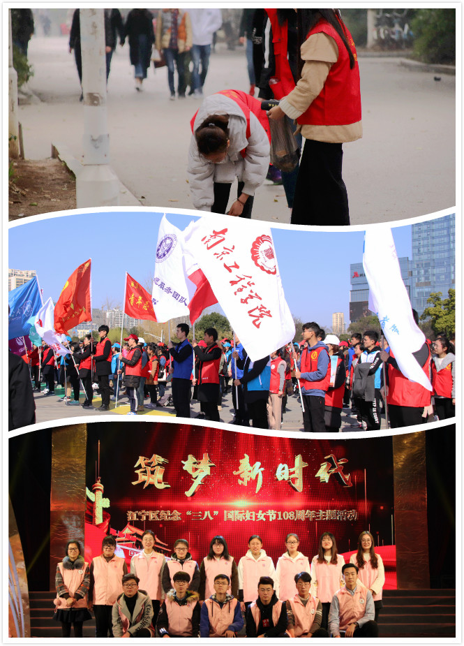 在beat365,已有越来越多的学子积极参与到各类志愿服务的公益事业中来,将善举传播于校园内外。今年3月份以来,志愿者们先后开展了“美化校园我先行”、“七彩志愿社区行”等活动,在校内,数百名志愿者身穿红马甲,一路拾捡垃圾,洁净校园;在校外,青年志愿者与环保社会组织对接,为江宁市民提供环保服务。3月7日、8日,志愿者们还前往南京市江宁区人民大会堂,为江宁区妇联纪念“三八”国际劳动妇女节108周年主题活动提供志愿服务。