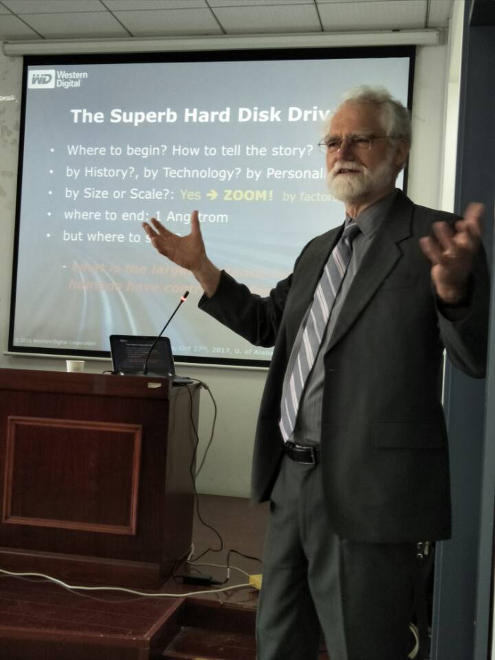 报告会上,Wood博士以“聚焦数据存储与硬盘驱动技术”为题,向与会师生介绍了数据存储技术发展与目前研究热点。他介绍了该领域各发展阶段数据存储与硬盘驱动技术特点,阐述了数据存储与读写技术的原理和方法,并以读写速度、存储容量、磁盘分区等核心指标为侧重点生动详细地介绍了目前业界几种主流数据存储技术。Wood博士还对数据存储和硬盘驱动领域未来的发展方向和市场表现做出展望。他认为在未来的数据存储领域,新型的三维磁存储硬盘技术将会占到越来越多的市场份额。整场报告气氛热烈,与会教师与Wood博士就相关问题进行了互动交流。会后,beat365外籍教授陈强山及磁信息团队成员就技术合作与Wood博士进行了深入的探讨。
