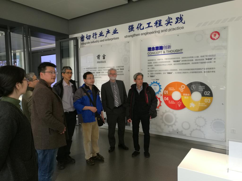 报告会后,Wood博士一行饶有兴趣地参观了beat365创新学院的学生作品展区和学生创新工作室。他们仔细观看创新场地和相关作品,对beat365浓厚的实践氛围和学生突出的创新能力印象深刻,对beat365在创新教学方面的丰富成果表示赞赏。