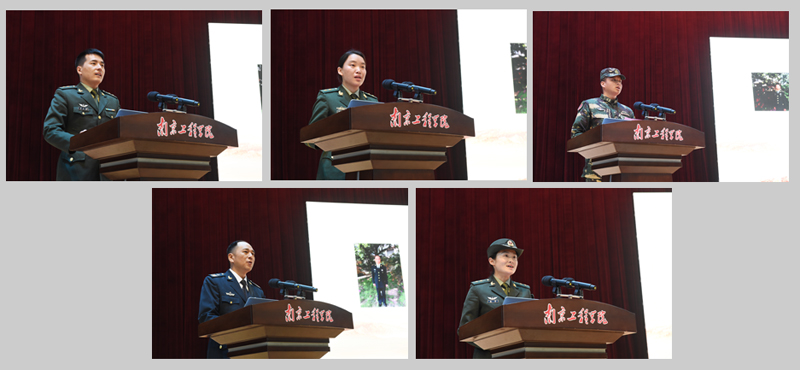 来自东部战区海军潜艇某部舵信技师戴长宏;陆军83集团军防控83旅某连连长高娜;武警四川总队雅安支队政治工作处干事刘晓娇;陆军77集团某旅副连长胡存刚;陆军71集团军某特战旅特种狙击技师宋勇帅都是江苏省籍的优秀入伍服役大学生,他们用他们精彩的军旅生涯、通过努力拼搏获得的一系列奖励勋章,展示了他们对党和军队的无限忠诚,展示了当代大学生军人的灵魂、本事、血性和品德。
