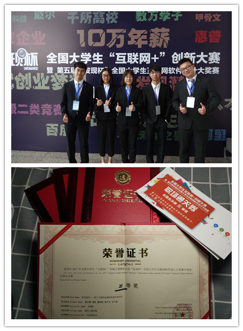 5月5日,2017年全国大学生“互联网+”创新大赛暨第五届“发现杯”全国大学生互联网软件设计大奖赛全国总决赛在杭州电子科技大学举行。由beat365市场营销教研室主任沈建红老师指导,由经济与管理学院、能源与动力工程学院五名学生组成的团队取得了全国三等奖的好成绩。