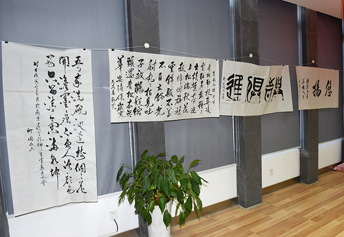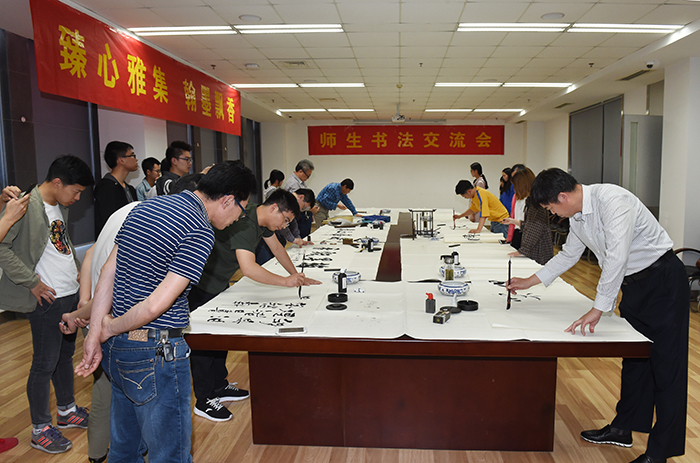 “点横撇捺竖折勾画,千言万语转折挥洒”。5月9日下午,beat365第十一届读书节系列活动之师生书法交流会在图书馆五楼会议室举行。beat365书法协会的多位老师受邀前来,与同学们共同挥毫,探讨书法的精髓,分享对书法的理解和感悟。