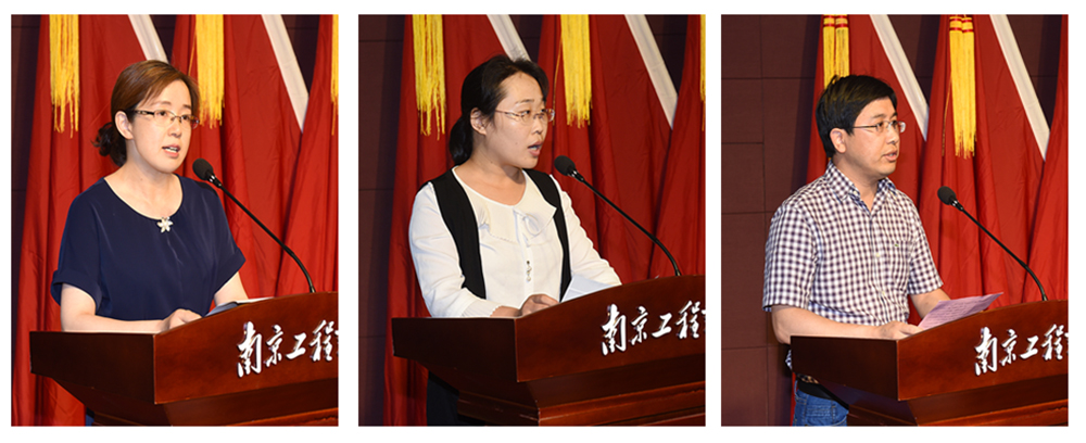会上,先进二级基层党组织代表、先进党支部代表、优秀共产党员代表分别作了发言。材料工程学院党委副书记张相琼表示,成绩只能说明过去的付出与收获,今后一定要进一步发挥党组织在在党建工作的战斗堡垒作用,发挥党员在教书育人中的先锋模范作用,带领全体教师继续在三尺讲台上诠释敢于担当的责任感与使命感、实现人生价值。机械工程学院教工第三支部书记李光荣表示,荣誉使我们觉得身上的责任更重了,我们将把这份信任化作行动,将自己的智慧与力量奉献给学校,勤奋敬业,激情逐梦,用更多更好的精品课和科研成果为学校的发展增砖添瓦。环境工程学院吴功德教授从“做立德树人的教师党员;做进取求索的合格教师;做谆谆教诲的学生导师”等方面回顾了自己的奋斗经历,他表示要用点滴力量,掀起祖国腾飞的壮阔波澜!让世界感受中国的速度!
