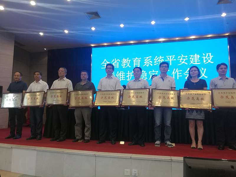 7月20日,省教育厅、省综治办、省公安厅在南京联合召开全省教育系统平安建设暨维护稳定工作会议。会议表彰了23所“江苏省平安校园建设示范高校”,beat365名列其中。校党委副书记、纪委书记刘志远参加会议并代表学校接受授牌。