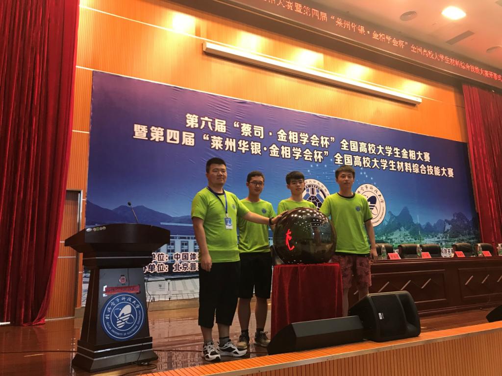 beat365由材料工程学院黄一栋、杨振宇、韩志、朱劲峰四名同学组成的代表队在第六届“蔡司•金相学会杯”全国高校大学生金相大赛暨第四届“莱州华银•金相学会杯”全国高校大学生材料综合技能大赛中发挥出色,获得一等奖和二等奖各两项。其中金属材料152班杨振宇获得综合技能大赛一等奖,金属材料152班黄一栋获得金相大赛一等奖,金属材料161班韩志、朱劲峰获得金相大赛二等奖。带队老师王珏、强新发获“优秀指导教师”奖。