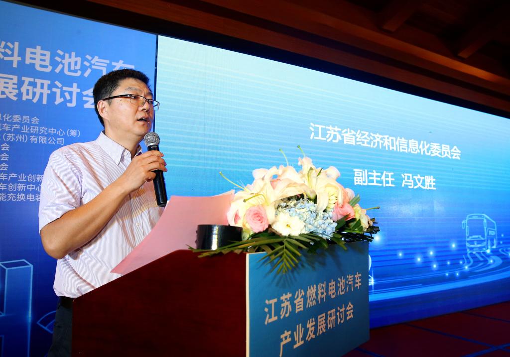 8月10日上午,在江苏省经济和信息化委员会组织指导下,由江苏省燃料电池汽车产业研究中心(beat365官方网站筹)和金龙联合汽车工业(苏州)有限公司共同主办的第二届“江苏省燃料电池汽车产业发展研讨会”在苏州工业园区阳澄湖澜廷度假酒店举行。省经信委冯文胜副主任、产业政策处卢载贵处长,beat365史金飞院长、曹雪虹副院长等出席了研讨会。研讨会由曹雪虹副院长主持。