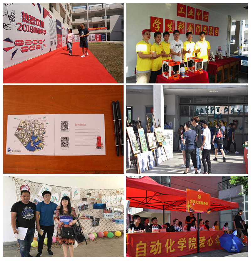 材料工程学院派送的“新生礼包”不是实物,而是令人意外的“知名教授的人生导航”;自动化学院、机械工程学院、能源与动力工程学院连续多年设立党员迎新服务站,从接待点到报到现场,从教室到宿舍楼,随处都可以看到学生党员的身影;工业中心现场办起了科创作品展,并用3D打印技术为每位新生制作宿舍卡作为纪念;外国语学院为每一位新生提供了大学“锦囊”;电力工程学院、经济与管理学院、艺术与设计学院等准备各具特色的心愿卡,新生们写下自己对于未来的期许,并投至专门准备的时光邮箱,以此激励自己不忘初心,努力奋斗;自动化学院、建筑工程学院、通信工程学院、汽车与轨道交通学院等设置了具有学院特色的各类“留念墙”,不少新生和家长们合影留念,记录下这一美好的瞬间。
