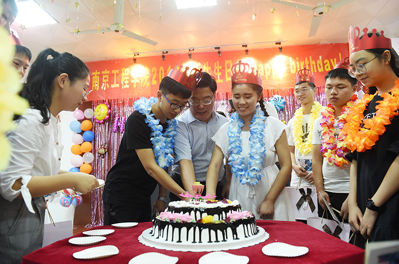 当十八的我遇到十八岁的你。报到日为新生过生日已成beat365传统爱心活动,今年正值学校合并组建十八周年,迎新当天,适逢18名新生过生日,其中有一半的新生过的是18岁的“成人礼”生日,这么多的“18”让这个生日变得特别有意义。在学校为他们精心准备的集体生日party上,幸运的小寿星们不仅收获了爱意满满的巧克力、鲜花、蛋糕,还收到书记校长亲笔签名的生日贺卡和史书记的现场祝福,祝贺他们在生日这一天从一个小家庭到了南工程这样一个大家庭,希望他们从此不虚度年华,自立自强,认真学习,刻苦钻研,成为建设国家的栋梁之才!“很幸运我的18岁生日遇上了学校的18岁。很感谢学校为我们准备了这么大的惊喜!这场生日party,这张贺卡、这枚校徽,都是最珍贵的入学礼物。”出生于2000年9月8日的魏维亭同学讲出了大家的心里话。