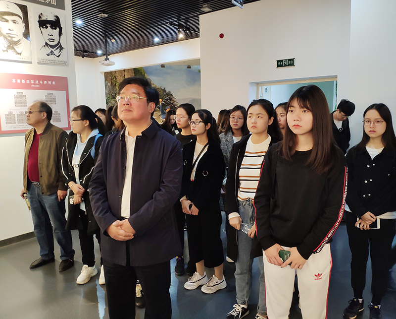 “一件件实物展示,一张张生动画面仿佛把我们带回到当年烽火硝烟的战争岁月。在这个美好深秋来到这里学习,更能让我们体会到幸福生活的来之不易,感受到当年新四军与苏南人民浴血奋战、保家卫国的革命精神。”史国君书记语重心长地表示,这是一次革命传统教育,更是一次思想上的洗礼,他勉励参与此次学习活动的全体同学,要始终牢记革命先烈的历史功勋,珍惜今天来之不易的幸福生活。不忘历史和传统,不忘初心,不忘青年大学生肩负的振兴中华实现民族伟大复兴的中国梦的使命担当,发奋努力,刻苦学习,做一名有理想、有信念、有作为的青年大学生。