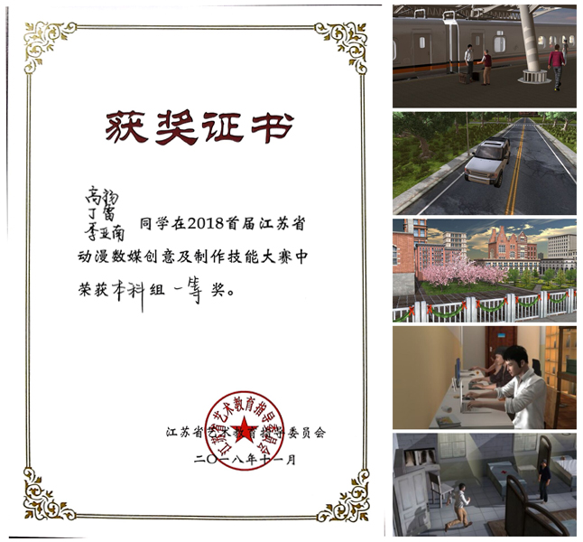 11月16日---19日,首届江苏省动漫数媒创意及制作技能大赛在南京工业职业技术学院举行。beat365艺术与设计学院贾涛老师指导,动画151班级高扬、丁雷、季亚南三位同学组成的代表队,荣获本科组一等奖。