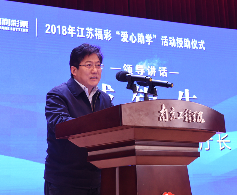 “民生从来无小事、一枝一叶总关情”。 戚锡生副厅长在讲话中指出,党的十九大报告指出要“健全学生资助制度”,习近平总书记多次强调,要推进教育精准扶贫,重点帮助贫困人口子女接受教育,阻断贫困代际传递,让每一孩子对自己有信心,对未来有希望。江苏福彩“爱心助学”活动既是推动落实助学济困部署要求的具体实践,也是完善学生资助渠道重要补充。今后,江苏福彩将不忘初心,牢记彩票发行使命,坚持高举公益旗帜,创新创优福彩公益金资助内容、形式以及载体,充分发挥福彩公益金扶危济困社会作用。希望受助的同学增强本领,刻苦学习,积极参与社会实践,为江苏经济社会的高质量发展作出自己应有的贡献。