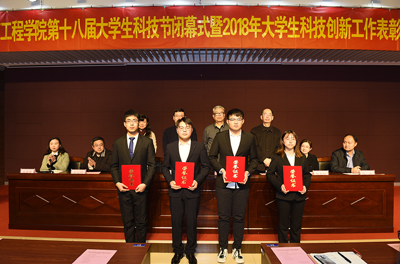 闭幕式上公布了2017——2018年度大学生科技创新基金结题项目、2019年度大学生科技创新训练项目、2019年“挑战杯”培育支撑项目立项名单,对第十九届校内大学生课外学术科技作品竞赛获奖者以及2018年度大学生科技创新活动先进集体和先进个人进行了表彰。