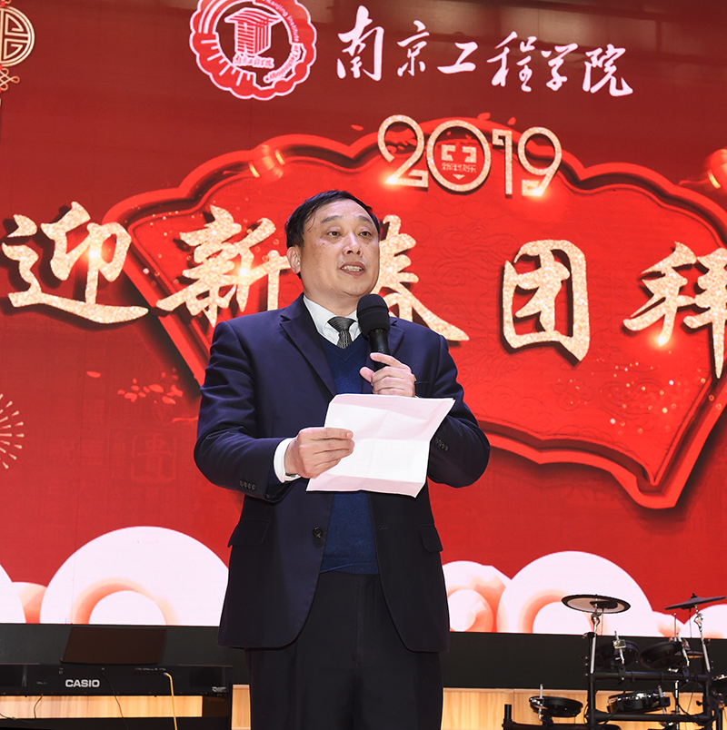 党委副书记、院长史金飞在团拜会上向全体师生员工、全体校友为学校事业发展所作出的贡献表示衷心感谢。他指出,2018年是学校发展历史上极不平凡的一年,每一位师生都是建设者、亲历者、见证者,回首过去,我们无比自豪;展望未来,我们信心百倍。我们要以党的十九大精神为指引,聚焦新要求、落实新任务,锐意进取、勇于创新,不驰于空想、不騖于虚声,一步一个脚印,踏踏实实干好工作。2019年,我们将深入贯彻落实学校第三次党代会精神,始终坚持求实创先、坚持改革发展,以更加饱满的热情、更加昂扬的姿态、更加扎实的作风,加快学校质量提升、内涵发展,奋力开创特色鲜明的高水平应用型工程大学建设新篇章。