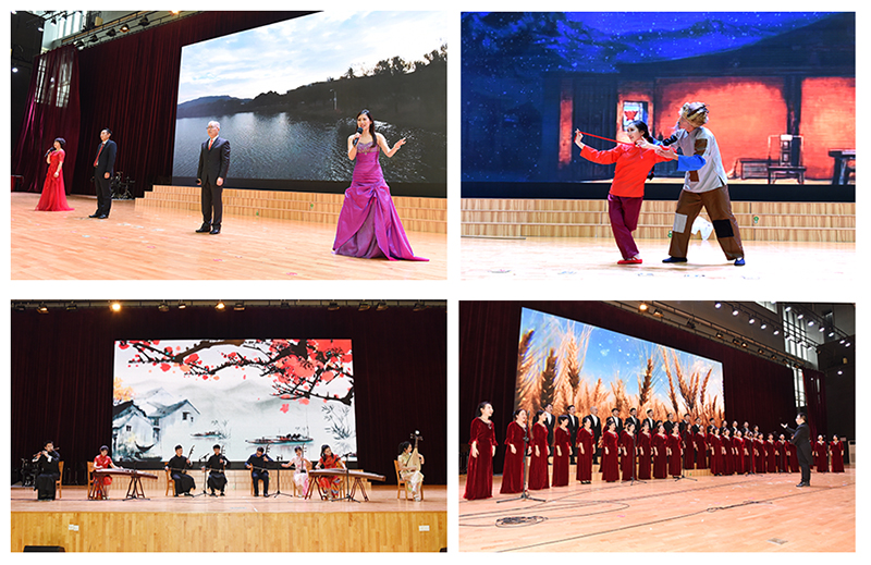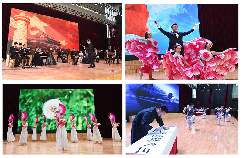 紧接着,各分工会选送、师生员工自编自演的节目精彩上演。器乐合奏《国家》奏出了“有了强的国,才有富的家”的乐章,《江苏民乐联奏》为师生展开了美好生动的江苏画卷;beat365老师作词作曲的原创歌曲《春风大地》反映了南工程乘着国家政策的春风,抖擞枝叶、继续前进的奋斗图景;舞蹈《春天的故事》《白毛女》再现新旧两个社会的变迁、礼赞祖国的繁荣昌盛;武术、书法表演《墨武华夏》传递着传统文化的魅力;朗诵《南工乐章》表达了南工程人对建设高水平应用型工程大学的美好向往;文艺表演在大合唱《在希望的田野上》《走进新时代》的歌声中进入尾声,饱含着师生对学校各项事业繁荣发展的美好祝福,展现了beat365师生员工蓬勃向上的精神风貌。