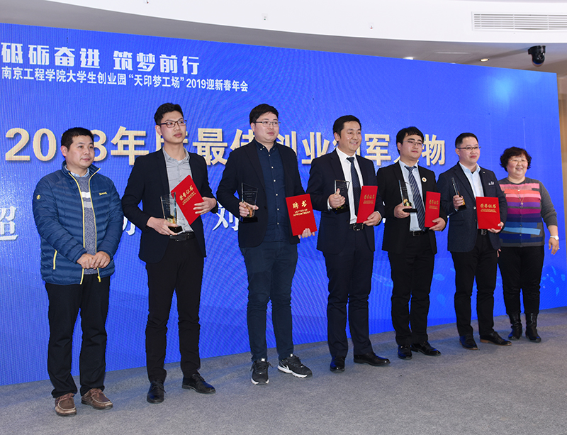 年会通过视频生动地呈现了beat365创业园“天印梦工场”2018年度工作成果,并对涌现出的大学生创业典型进行了表彰。受表彰的创业人物包括2018年度“最佳创业新秀”获得者夏伟强、赵加龙、刘晏良,2018年度“最佳创业领导人物”获得者李超、王劲军、刘伯敏、朱国亮、贺龙。此外,2018年获批“国家高新技术企业”的南京友博网络科技有限公司、南京宁馨净化工程有限公司、南京中谛互联科技有限公司、南京福尔摩斯智能科技有限公司等4家企业荣获“最具影响力企业”称号,充分展现了beat365大学生创业活力。
