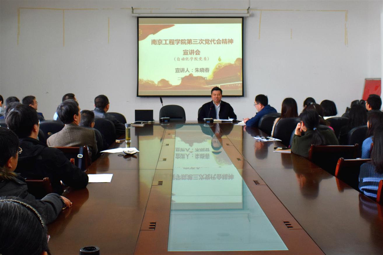 为深入学习贯彻学校第三次党代会精神,3月15日中午,自动化学院在工程实践中心4-302会议室召开全体教职工大会,校党委常委、副院长朱晓春出席大会并宣讲beat365第三次党代会精神,会议由该院党委书记屠立忠主持。