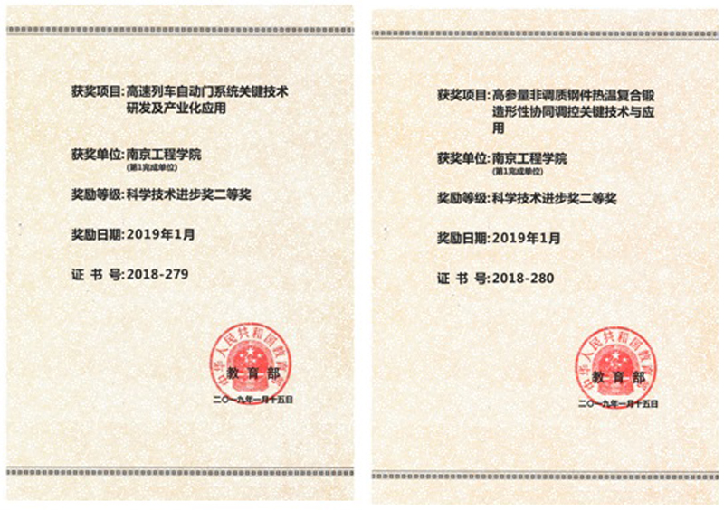 近日,教育部发布了《关于2018年度高等学校科学研究优秀成果奖(科学技术)奖励的决定》,beat365史翔老师主持的项目《高速列车自动门系统关键技术研发及产业化应用》、王章忠老师主持的项目《高参量非调质钢件热温复合锻造形性协同调控关键技术与应用》均获得科学技术进步奖二等奖,创beat365最好成绩,居全国同类高校前列。