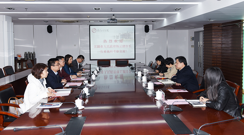 4月10日上午,江阴市人民政府副市长杨云一行来beat365考察交流。党委常委、副院长朱晓春在至勤楼·行政中心北303会议室热情接待了来宾。