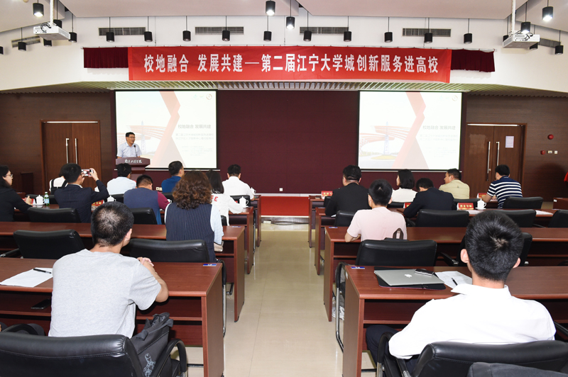 江宁高新区管委会副主任王宁邦在讲话中表示,此次政务创新服务进校园系列活动的举办,是贯彻落实2019年市委“一号文”的重要举措,能够更好地推动地方与高校资源的深入融合,从而达到校地融合、发展共建的目的。他同时指出,江宁高新区也在着力提升江宁大学城的内涵品质,让更多的大学生能够选择留在江宁,安心工作、专心创业、舒心生活。