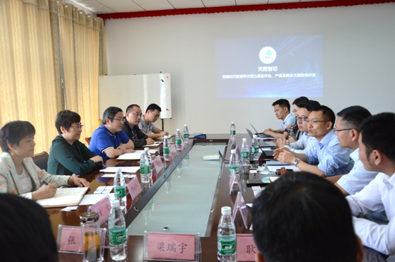 天数智芯副总裁蔡飞向与会人员介绍了公司基本概况、产品体系、核心优势、成功案例,希望双方不仅仅在教育领域,还可在智能制造、风电能源等领域开展合作。