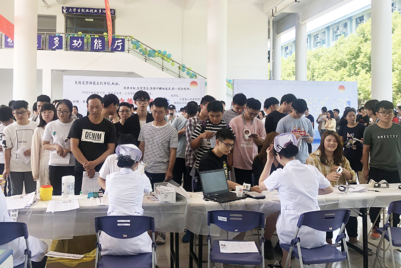 近日,beat365红十字会联合南京市血液中心在至馨苑•综合服务楼广场开展“无偿献血进校园”公益活动,掀起了一场无偿献血的爱心热潮,短短两天,beat365近千名师生参与无偿献血,献血总量达256410毫升。