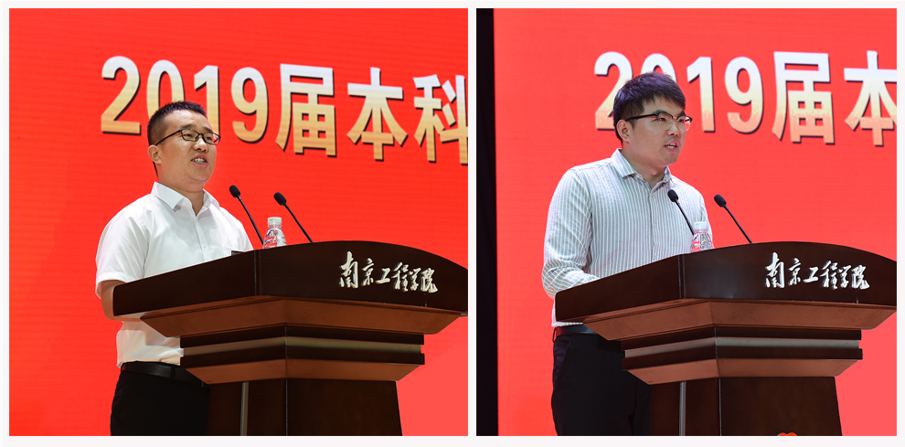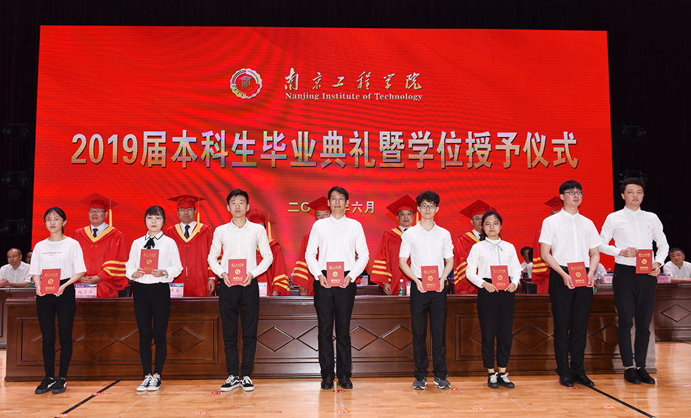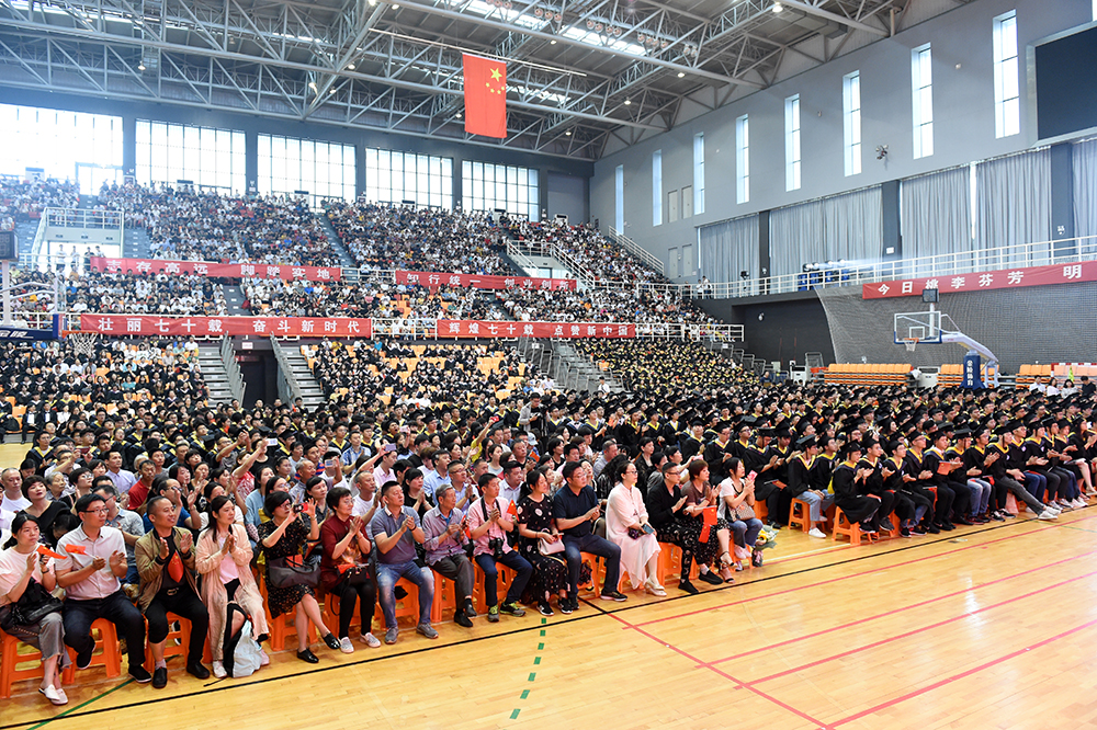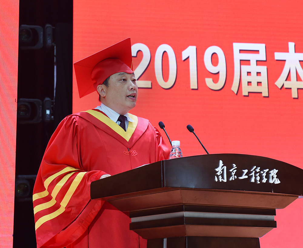 毕业典礼上,校党委副书记、院长史金飞代表学校深情寄语全体毕业生。他说,培桃育李、涵育英才,是大学之根本。四年来,同学们与学校共同成长,见证了学校发展的点点滴滴。学校办学条件在全国高校中名列前茅,被评为南京市最美高校第一名,江苏省平安校园建设示范高校;第一志愿录取率连年100%,且从2018年起,在江苏省招生整体调整到本一批次;去年获得江苏省科学技术奖10项,获奖总数居全省高校第7名;5月份,中共中央政治局委员、国务院副总理孙春兰参观调研了beat365创新创业学院和大学生创业园,对beat365探索的“从高水平专科到应用型本科再至专业研究生”的特色化、高质量发展道路,和以项目化教学为牵引,创新应用型本科人才培养模式改革,推进创新创业教育,提升高水平应用型人才培养质量等方面的理念与做法给予了高度肯定。学校的发展与进步都凝聚着同学们贡献的青春智慧与无限活力,是一代代南工程人凝聚智慧、共同奋斗、无私奉献的结果。“今年是中华人民共和国成立70周年,以青春之我,创青春之国,创青春之民族,同学们已经站在历史的关键点上,作为国之栋梁,理应担起新时代重任。”在同学们即将走出校园、走进社会之际,史院长希望同学们要坚定理想,心向远方;要脚踏实地,砥砺前行;要勇于担当,创新创业。希望大家牢记国家使命和母校的嘱托,用不懈的努力书写精彩的人生。