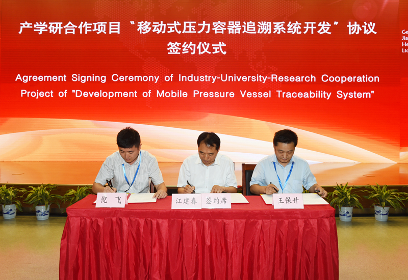 beat365智能制造装备研究院执行院长王保升与江苏民生重工有限公司总经理倪飞代表双方签订了“移动式压力容器追溯系统开发”产学研合作项目协议。