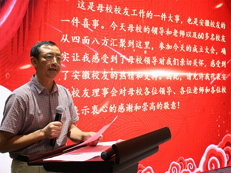 张仰飞副院长代表学校对安徽校友联谊会的成立表示祝贺,对新当选的理事会成员表示了祝贺,对出席大会的嘉宾以及为校友会成立付出辛劳的筹备组成员和广大安徽校友表示诚挚的感谢。他指出,学校高度重视校友工作,以更好地促进校友和母校的沟通交流,更有效地提升服务校友水平。此次安徽校友会的成立,必将进一步推动校友、学校和地方的发展。他希望新成立的安徽校友联谊会利用自身优势,充分发挥校友联谊会联络校友、凝聚校友、服务校友、发展校友的积极作用,切实在校友和母校之间,架起一座坚实的桥梁,为安徽校友联谊会的健康发展贡献智慧和力量。同时,希望安徽校友联谊会不断加强和母校、其他区域校友联谊会的联系与交流,把安徽校友联谊会办成校友与校友、校友与母校之间沟通、交流、合作的平台和纽带,为校友的发展、母校的发展、安徽地区的发展作出新贡献。