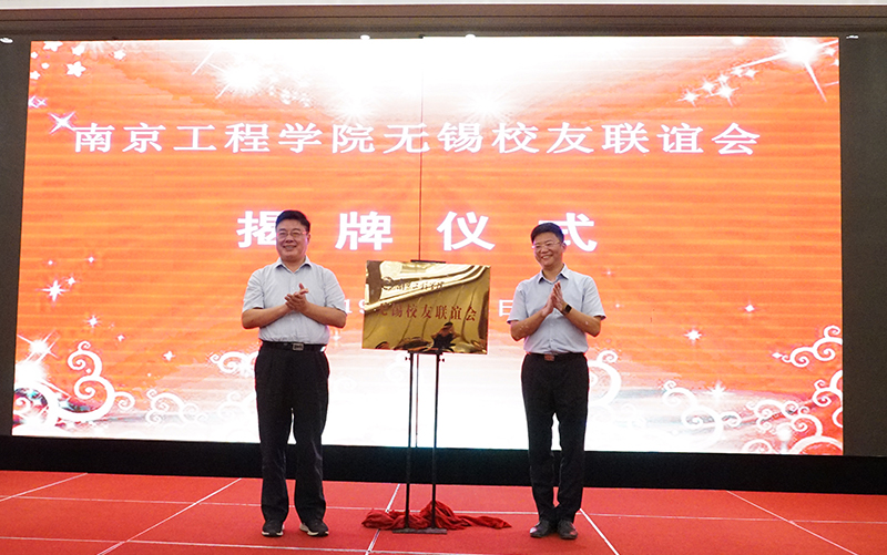 史国君书记和新当选会长谈伟光共同为无锡校友联谊会揭牌。