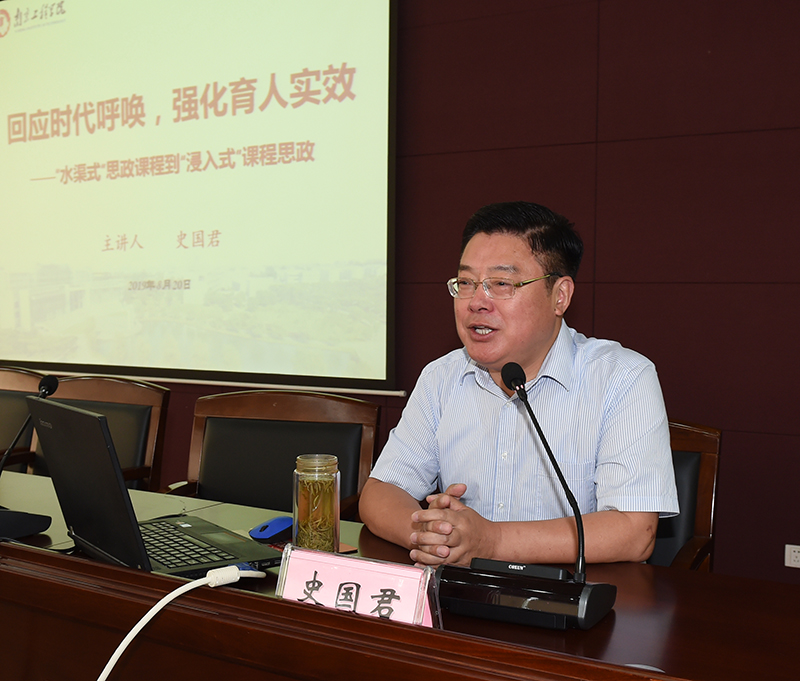 研讨会上,与会人员以及思政课专业教师认真聆听了党委书记史国君所作的题为《回应时代呼唤,强化育人实效》的专题报告。史书记结合实例,深入阐述了“水渠式”思政课程到“浸入式”课程思政的思政工作理念,生动讲授了如何脚踏实地做好大学生思想政治工作,并对大家提出了“政治信念坚定、师德师风优良、业务能力过硬,工作亮点突出,理论研究有成果”的殷切期望。