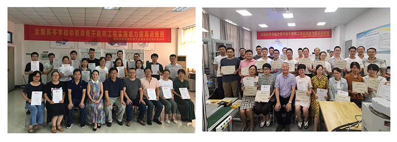 培训共分三个方向,一是适应从事电气工程及其自动化、自动化、机器人工程或机电一体化等专业专任教师的《电气与自动化技术》培训班,主要是进行国际一线品牌电气自动化产品(包括三菱FX5U、PLC、HMI、VVVF、SV、BUS)的系统集成应用等;第二方向是适应从事电工电子专业基础课程老师的《电子系统综合设计与训练》培训班,主要是学会小型电子系统产品的设计实现,PCB软件的设计与硬件制作等;第三方向是适应新办机器人工程、智能制造工程专业专任教师的《工业机器人技术与应用》培训班,主要是学习工业机器人(ROBOT)的操作编程、机器视觉与系统应用实践等。