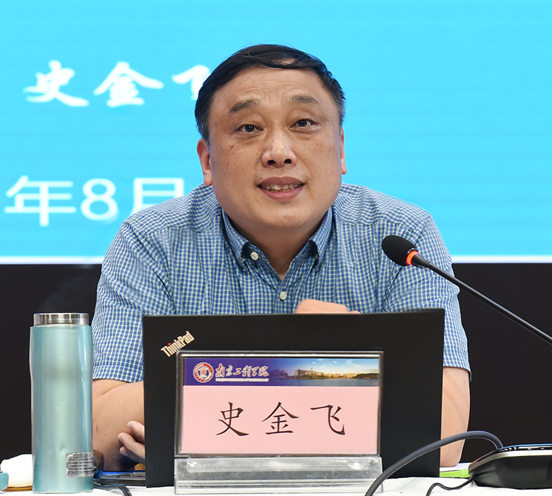 会上,史金飞院长作了题为《坚持求实创先 坚持改革发展 聚焦内涵建设 彰显办学特色》的报告。报告从学校应用型办学特色进一步彰显、核心竞争力进一步提升、内部管理水平进一步提高等三个方面对2019年上半年工作进行了全面总结,涉及目标考核引领、申硕攻坚部署、办学特色彰显、师资队伍建设、科技工作突破、学生工作加强、党建工作加强、服务能力提高、对外合作交流拓宽、校友工作积极推进、社会知名度和影响力提升等多方面成果。史金飞院长结合当前学校发展存在的新机遇和面临的新挑战指出,在下半年及今后一段时期,学校要以“坚持求实创先 坚持改革发展 聚焦内涵建设 彰显办学特色”为应对思路,紧扣学校第三次党代会报告、第四届教代会报告、二级教育教学单位调研报告以及2019年学校党政工作要点,进一步加强党的建设,扎实开展“不忘初心、牢记使命”主题教育,认真做好庆祝新中国成立70周年系列活动,加强基层党组织和干部队伍建设,加强党风廉政建设,持续推进二级单位巡察;进一步提升内涵建设,坚持改革开放,聚焦申硕攻坚,推动项目化教学综合改革,从应用型人才培养和服务地方行业着手,突出应用型办学特色;进一步推进校园建设,注重开源节流,健全内控体系,深化内部管理体制改革,持续推进“三化五园”建设,集全校发展合力,推动学校各项事业发展新进程。