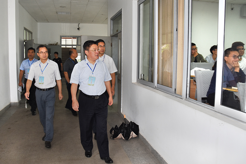 上午8时,校领导走进教学楼全面了解学生到课率、课堂秩序以及教学基础设施运行情况。新学期伊始,每间教室门口均张贴了教室铭牌,课程信息一目了然,为师生查看教室课程信息提供了便捷;在学生食堂,校领导对学生用餐环境和餐饮供应等情况进行了检查,与正在用餐的学生进行亲切地交谈;在学生公寓,校领导仔细查看了公寓生活配套、安全设施和环境卫生状况,对新生公寓的面部识别门禁系统及学生公寓自习教室给予高度认可。校领导还围绕“通识教育”,从教学资源、教学条件等方面与相关部门负责人进行了交流。
