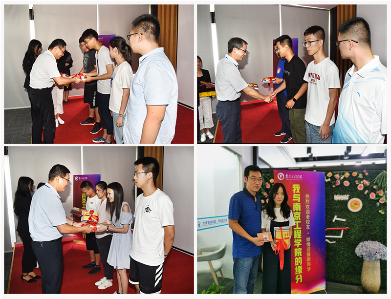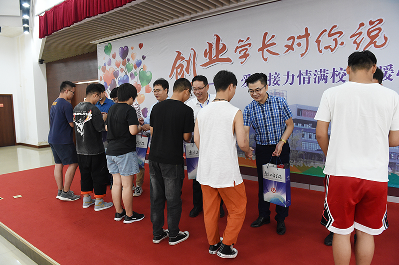 从送爱心早餐到送生活用品,从南工程走出的青年创客们每年都会想着法子为新生准备礼物,今年,从大学生创业园成长起来王劲军、贺龙、张翔、夏伟强、唐虎、徐飞等6家企业负责人主动联系学校,为550多名办理生源地助学贷款的新生送上一份生活用品礼包。除此之后,他们每个人都给学弟学妹写了一封信,与他们分享创业历程,勉励学弟学妹珍惜在南工程的四年时光,立志在创新创业创造的时代大潮中建功立业。下午,张仰飞副院长来到活动现场,与创业学长代表一起将爱心大礼包放给新同学,并寄语他们要自强不息、无惧困难;要奋发有为、成长成才;要学会感恩,爱国爱校。