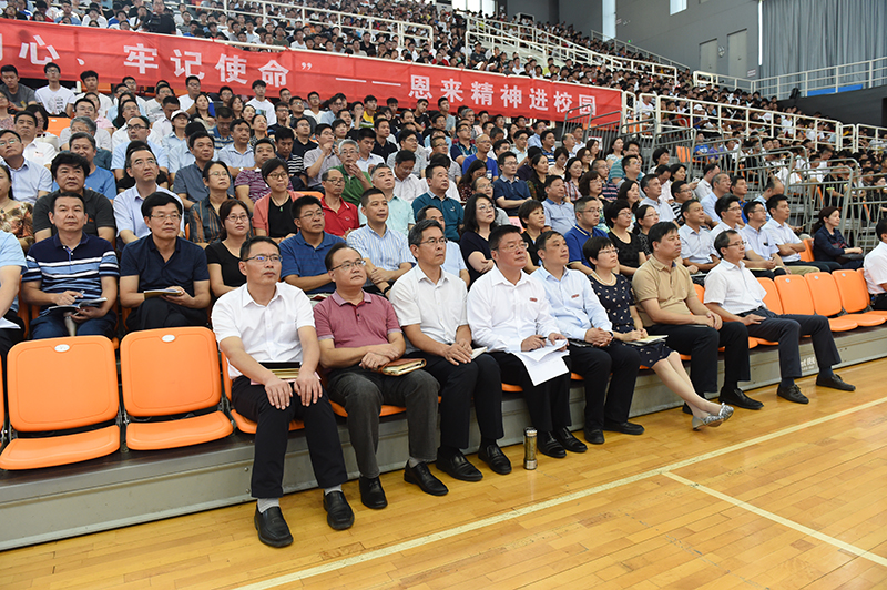 9月9日下午,周恩来纪念馆副馆长谭建华率宣讲团走进beat365,为beat365全体中层及以上领导干部和本科新生现场宣讲“恩来精神”。