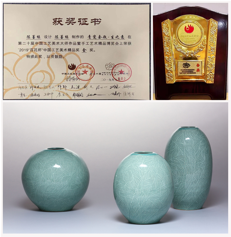 陈墨缘老师为beat3652017年引进的青年博士,擅长将中国青瓷装饰技法与韩国高丽青瓷镶嵌技法融合运用于现代陶瓷艺术创作中。博览会上他提交了作品《青瓷套瓶——生之意》,将错综复杂的线条巧施于器体通身,发挥出刀刻线条的遒劲、青瓷釉料的透明特性,构筑出交织有序、含义隽永的生命空间,受到专家和参观者的一致好评。